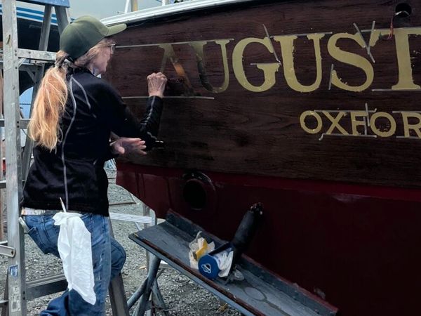 “There aren’t many hand painters left,” she said. “They’re either dying off or retiring. But the art of lettering deserves to be carried on.” She’s doing her best to preserve it: this summer, she has a young apprentice — Liza Love, a student and artist from St. John’s College in Annapolis.