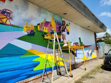 I was born in Annapolis, MD and am still happily living here now. After graduating at the top of my class at Maryland Institute College of Art, I worked in sign shops and learned the art of sign lettering and then ventured out on my own focusing on boat lettering around the Chesapeake Bay. I was also hired to do wall murals and over time the wall murals became my primary source of work.